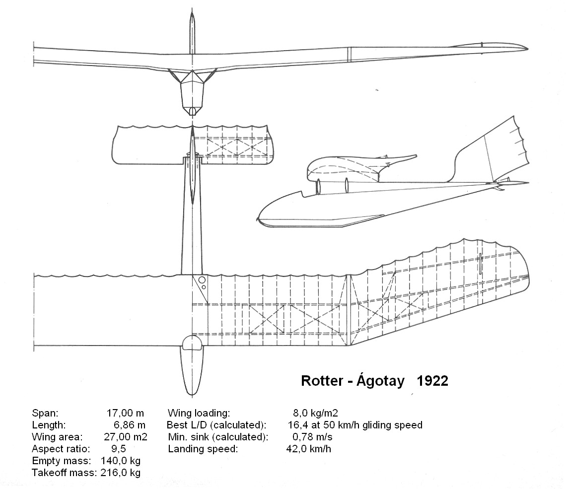 Lajos Rotter's interest in aviation became apparent in his secondary school years, when he built elaborate aeromodels and spent his summer vacations at aircraft factories as apprentice. His secondary school graduation coincided with the end of the Great War. After the war he was enrolled in the mechanical engineering faculty of the Technical University of Budapest. During his years at the university he studied wide aspects of aviation utilizing his command of four languages. He was one of the originators of the Technical University’s Sportflying Association (MSrE) in 1921. Even as a student he published articles in different scientific aviation reviews. His first book „Vitorlázórepülés” (Gliding) was published by the Hungarian Aero Association. When the Ministry of Transportation’s Aviation Department had invited glider designs in a frame of a design contest in 1922, Rotter together with a fellow student István Ágotay presented a design. The design was accepted. Its construction had been started at a woodwork factory, however it was never finished as the previously promised financial help did not materialized.