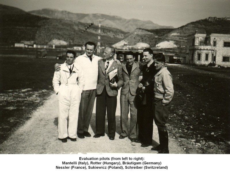 Subsequently the IOC’s meeting held at Bern at March 24, 1938, where the Council included gliding into the list of optional Olympic summer sports for future Olympic Games, a decision was reached by FAI that all participants have to fly a common glider type the main characteristics of which were defined. Designs had been invited in the frame of a design contest and the final selection on the type was done by testing the prototypes of the entered and accepted designs at Sezze airfield in Italy between February 20 and 26. Rotter was selected into the group of six evaluation pilots. The selected glider type was Hans Jacob’s design, the DFS Meise. (Unfortunately WWII swept away the decision of IOC.)