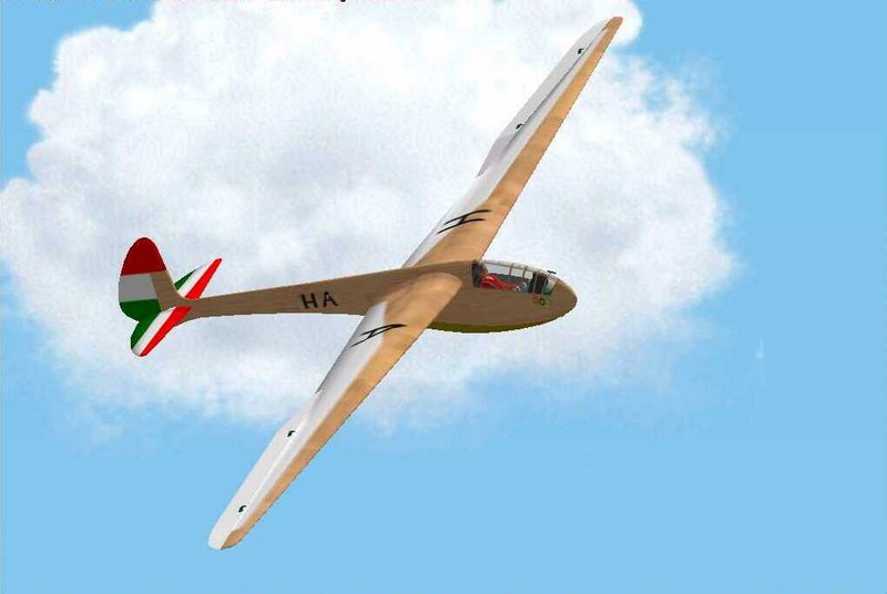Flight simulator activity in many aspects is simalar to aeromedeling. Both activities cover designing, building and flying - real or virtual - models of aircraft. In cases when no original model designs but models of existing aircraft types are involved the authenticity is important. To postulate a model to be the copy of an existing aircraft is a responsibility as many people would get acquainted with a part of the history through this model. The reason to open such a page whithin Hungarian Gliders is to show pictures of authentic simulated versions of Hungarian gliders as - unfortunately - there are activities in the flight simulator world and other websites to disguise gliders in the "skin" of other glider types. The history of both types - the disguised and a "front" one - are falsified in this way.