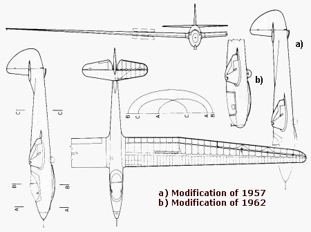 | Type: | Original version: Nose and aft skid, wheel dolly; 1962 version: retractable wheel |