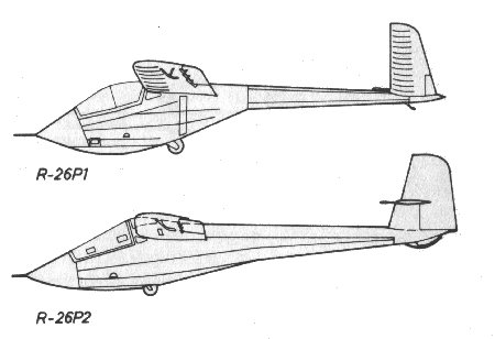 The second prototype, the R-26 P2, had similar wing structure and arrangement as that of the P1 version, however DFS-type airbrakes were fitted working on both surfaces of the wing. The form and structure of the fuselage had got a new form and structure, which was later used on the production version. The tail unit had traditional arrangement. The horizontal surfaces were positioned above the fuselage on the vertical stabilizer to get better spin behavior. The rudder had a large balancing area. The elevator was balanced aerodynamically and had mass-balance as well. This version first flew at August 23, 1961.