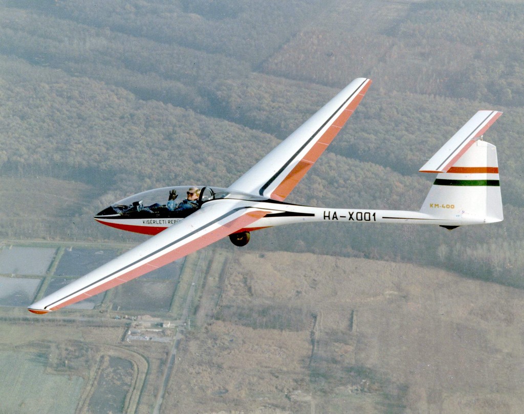 The winner design was not built by the factory. The designer had obtained a patent for the control system and later found sponsors in the Airplane Service of the Hungarian Agricultural Ministry (MÉM RSZ), the Hungarian Agricultural Ministry and the Agricultural College of Nyiregyháza. The redesigned glider got the designation of KM-400 and was built at the workshop of the MÉM RSZ located in Nyiregyháza. The glider first flew at Jun, 1983, however with a temporarily fitted elevator. At December, 1983 the glider finally flew in her originally intended configuration. The test flights were successful. However the sponsors did not supported the experiments past the tests. Today the glider is a valued item of the Permanent Aircraft Exhibition of the Museum of Transportation at Budapest.